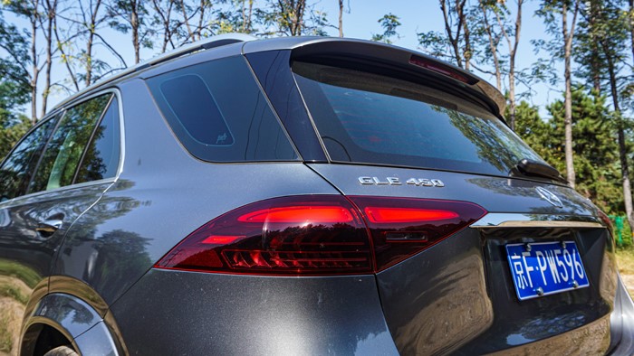 奔馳GLE450 4MATIC車尾看起來要比車頭低調一些,尾燈造型與普通款相同,內部結構相當精致,點亮后視覺效果出色。