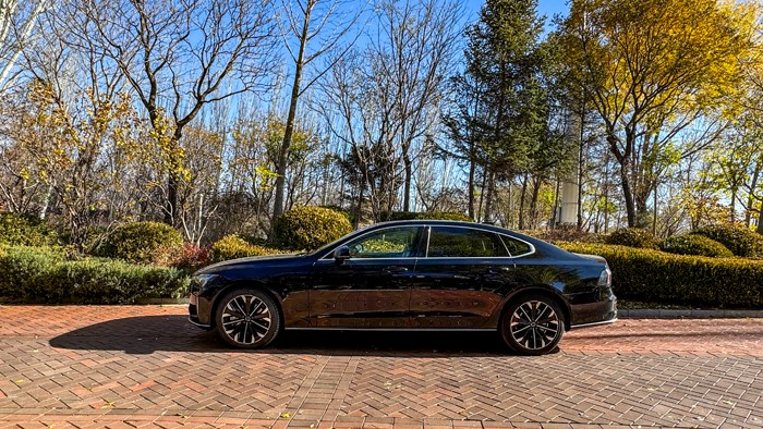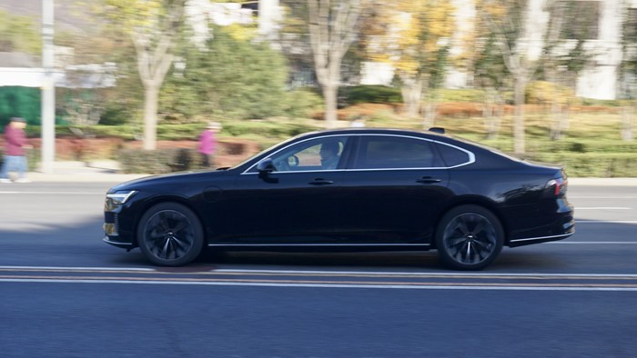 S90屬于中大型轎車配合瑪瑙黑的油漆格外莊重,車身尺寸長寬高分別為5090×1879×1453毫米,軸距3061毫米。這個尺寸相對BBA競爭車型來說,有較大的優勢。舒展的車身側身,讓人能感受到氣場與優雅。