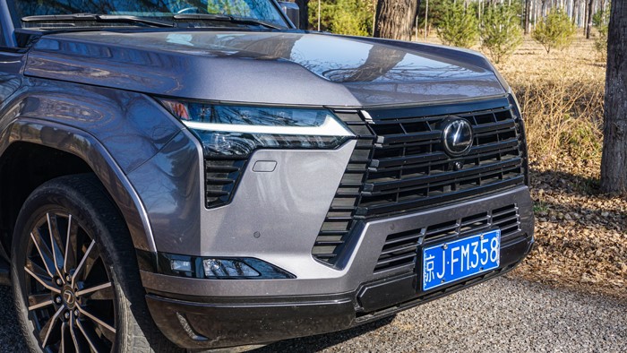 GX550h不規(guī)則輪廓的LED矩陣大燈組設(shè)計(jì)線條很銳利,光芒四射,當(dāng)然,提供給駕駛者出色的照明效果。巨大的中網(wǎng)LOGO體現(xiàn)出雷克薩斯品牌的強(qiáng)大氣場(chǎng)。