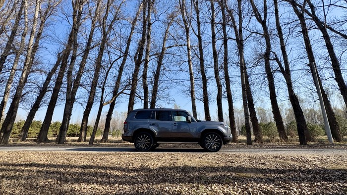 車身側(cè)面輪廓線條簡(jiǎn)潔利落,展現(xiàn)出SUV的穩(wěn)重感和力量感。車窗下沿做了階梯式設(shè)計(jì),方便駕駛員越野時(shí)觀察路況。車身尺寸為4960×1980×1935mm,軸距達(dá)到了2850mm。