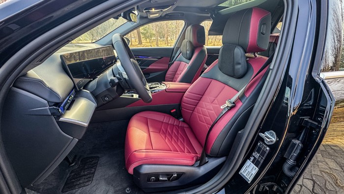 拉開車門走進內(nèi)飾,寶馬5系的內(nèi)飾設(shè)計充滿了現(xiàn)代感和科技感,融合了豪華材質(zhì)、精致工藝和高科技配置。內(nèi)飾配色方面,勃艮第紅色真皮與黑色鋼琴漆、啞光銀色裝飾板相結(jié)合,很顯檔次。