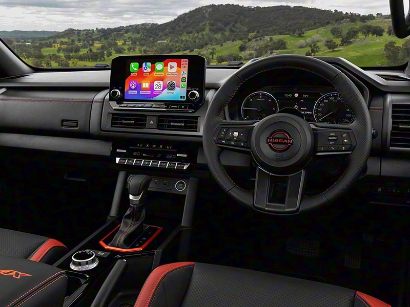 頂配的PRO-4X版在前臉、車側等位置加入熔巖紅裝飾件。新車繼續提供龍門架。側踏板等,另外還提供17英寸輪轂搭配AT越野胎。